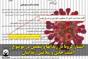 با توجه به محیط بسته زندان، تغذیه نامناسب، نبود امکانات بهداشتی و پزشکی لازم، تراکم بالای جمعیت، بروز موارد مشکوک کرونا در برخی زندانها موجب نگرانی زندانیان و خانواده های آنان شده است. در برخی زندانها مانند سنندج، خرم آباد زندانیان خواستار دریافت امکانات بهداشتی لازم و همینطور قرنطینه شدن افراد مشکوک به این بیماری شده اند و تهدید کرده در صورت تداوم بی توجهی به اعتصاب غذا دست خواهند زد، زندانهای دیگر از جمله زندانهای کرج، ارومیه، تبریز، رجایی شهر، اوین همراه با بسیاری از زندانهای کشور ملتهب از این وضعیت هستند. همچنین روز شنبه ۱۰ اسفندماه زندانیان محبوس در زندان باز خرم آباد در اعتراض به عدم اعزام به مرخصی علیرغم شیوع کرونا در این زندان دست به اعتصاب زده بودند.