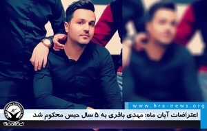 ارگان خبری مجموعه فعالان حقوق بشر در ایران، مهدی باقری، یکی از شهروندان بازداشت شده در جریان اعتراضات سراسری موسوم به “اعتراضات آبان ماه” توسط دادگاه انقلاب تهران به ۵ سال حبس تعزیری محکوم شد.
