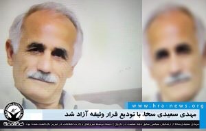 ارگان خبری مجموعه فعالان حقوق بشر در ایران، عصر روز چهارشنبه ۱۴ اسفندماه ۱۳۹۸، مهدی سعیدی سخا، شهروند ۶۴ ساله اهل تبریز، با تودیع قرار وثیقه ۳۰۰ میلیون تومان به صورت موقت و تا پایان مراحل دادرسی از زندان تبریز آزاد شد.