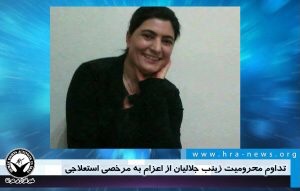 ارگان خبری مجموعه فعالان حقوق بشر در ایران، زینب جلالیان، زندانی سیاسی در زندان خوی در سیزدهمین سال حبس خود از اعزام به مرخصی محروم است.