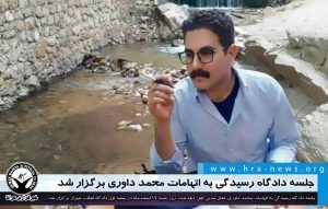 به گزارش خبرگزاری هرانا، ارگان خبری مجموعه فعالان حقوق بشر در ایران، روز شنبه ۱۷ اسفندماه ۱۳۹۸، جلسه دادگاه رسیدگی به اتهامات محمد داوری، فعال مدنی اهل دهدشت، در شعبه اول دادگاه انقلاب شیراز برگزار شد.