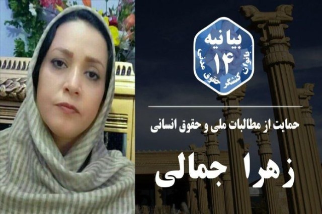زهرا جمالی, فعال مدنی و از امضاکنندگان نامهٔ ۱۴ نفرهٔ دوم (زنان داخل ایران)، محبوس در بند زنان زندان اوین