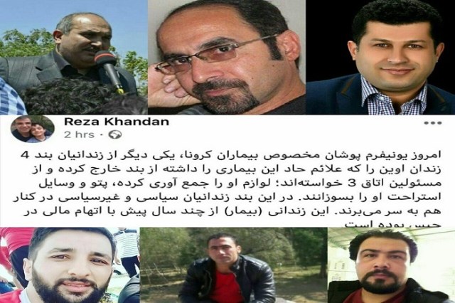 همچنین فعالین سیاسی مدنی آذربایجانی طی تماسی که با خانواده داشته اند در روز ۱۹ فروردین ۱۳۹۹ از اعزام یک نفر در اتاق۳ بند۴ که علائم حاد بیماری کرونا داشته است به بهداری زندان اوین و احتمالاً بعداً به بیمارستان خبر داده اند.