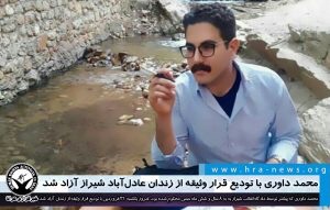 محمد داوری روز یکشنبه ۱۰ آذرماه ۱۳۹۸، از زندان یاسوج به بازداشتگاه اداره اطلاعات شیراز (پلاک ۱۰۰) منتقل و مدتی بعد در تاریخ ۲۱ دیماه از بازداشتگاه این نهاد امنیتی به زندان عادل آباد شیراز منتقل شد. انتقال آقای داوری به زندان شیراز در حالی صورت گرفته بود که مادر و پدر مسن او امکان ملاقات متداوم و سفر به شیراز را ندارند.