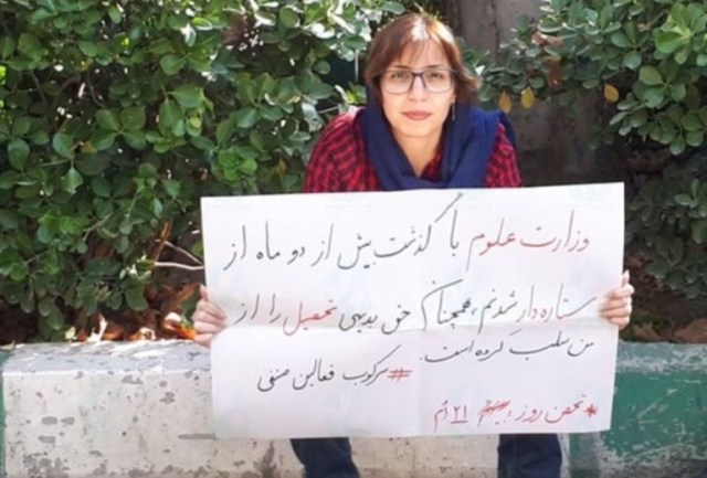 After her release, Saha Mortezaei was banned from continuing her studies at the university, and after being informed of deprivation her studies, despite ranking 10th on the national entrance examination for doctoral studies in Politics Science and International Relations, she held a sit-in protest for 19 days at the campus of Tehran University with the aim of returning to university for continuing her classes.