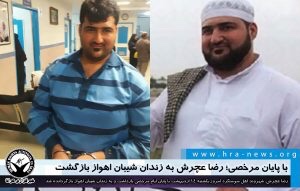 ارگان خبری مجموعه فعالان حقوق بشر در ایران، امروز یکشنبه ۱۴ اردیبهشت ۱۳۹۹، رضا عچرش، شهروند اهل سوسنگرد با پایان ایام مرخصی بازداشت و به زندان شیبان اهواز بازگردانده شد.