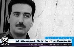 ارگان خبری مجموعه فعالان حقوق بشر در ایران، صبح امروز شنبه ۲۰ اردیبهشت ۱۳۹۹، هدایت عبداللهپور، زندانی محکوم به اعدام از زندان ارومیه به مکان نامعلومی منتقل شد.