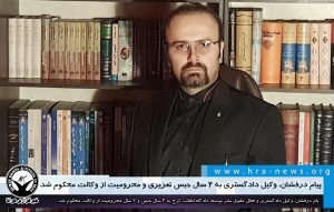 پیام درفشان، وکیل دادگستری و فعال حقوق بشر توسط دادگاه انقلاب کرج به ۲ سال حبس تعزیری و ۲ سال محرومیت از وکالت محکوم شد. آقای درفشان در تاریخ ۹ شهریور ۹۷ در منزل آرش کیخسروی، وکیل دادگستری و موکل خود بازداشت و مدتی بعد با تودیع قرار وثیقه آزاد شد. درفشان، تاکنون وکالت پرونده بسیاری از زندانیان سیاسی را برعهده داشته است. سعید دهقان وکیل مدافع پیام درفشان، حکم صادره در خصوص موکل خود را، “حکمی فاقد استدلال در دادگاهی مانع وکالت، بدون اجازه مطالعه پرونده پیش از محاکمه و رای” خوانده است.