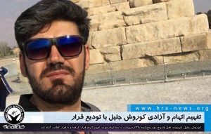 کوروش جلیل، شهروند اهل یاسوج روز پنجشنبه ۲۵ اردیبهشت پس از حضور در شعبه ۵ دادسرای عمومی و انقلاب یاسوج با سه اتهام مورد تفهیم اتهام قرار گرفته و با تودیع قرار موقتا و تا پایان مراحل دادرسی آزاد شد.