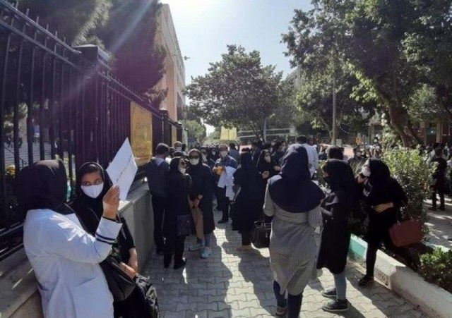 گروهی از پرستاران و اعضای کادر درمانی اصفهان در اعتراض به اجرا نشدن قانون مشاغل سخت و زیانآور در مقابل دادگستری اصفهان تجمع کردند.