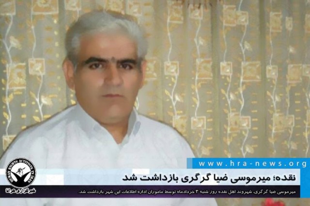 ارگان خبری مجموعه فعالان حقوق بشر در ایران، امروز شنبه ۳ خردادماه ۱۳۹۹، میرموسی ضیا گرگری، شهروند اهل نقده توسط ماموران اداره اطلاعات این شهر بازداشت شد.