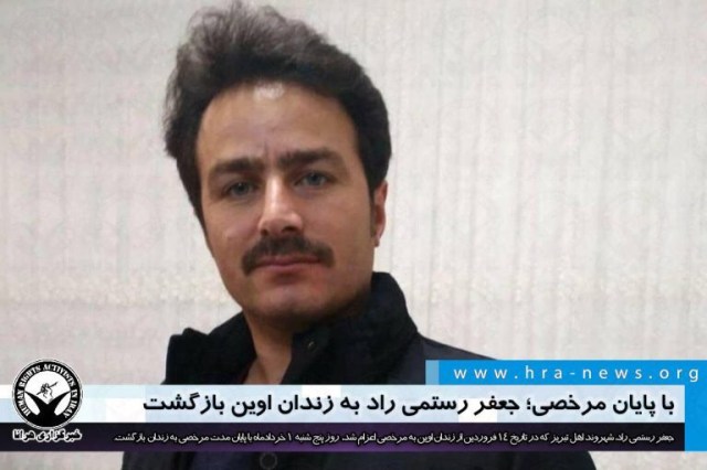 جعفر رستمی راد، شهروند اهل تبریز که در تاریخ ۱۴ فروردین از زندان اوین به مرخصی اعزام شد، روز پنجشنبه ۱ خردادماه با پایان مدت مرخصی به زندان بازگشت.