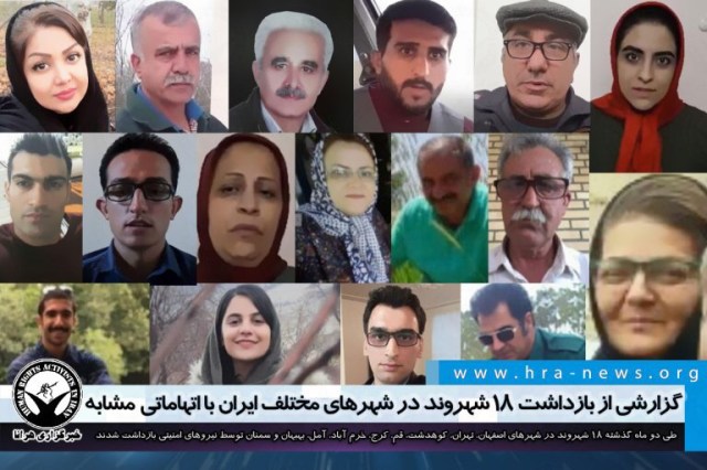ارگان خبری مجموعه فعالان حقوق بشر در ایران، طی دو ماه گذشته ۱۸ شهروند در شهرهای مختلف ایران توسط نیروهای امنیتی بازداشت شدند.