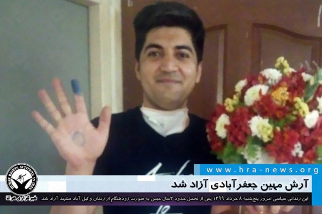 مجموعه فعالان حقوق بشر در ایران، آرش مهین جعفرآبادی، زندانی سیاسی امروز پنجشنبه ۸ خرداد ۱۳۹۹ به صورت زودهنگام از زندان وکیل آباد مشهد آزاد شد.