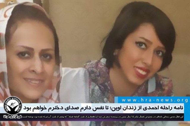راحله احمدی فعال مدنی محبوس در بند زنان اوین نامهای در خصوص افزوده شدن غیرقانونی حکم ۱۵ سال حبس به پرونده دخترش صبا کردافشاری از بابت “اشاعه فساد” که پیشتر از بابت آن تبرئه شده بود نوشته است. او در بخشی از این نامه ضمن ناعادلانه و غیرقانونی برشمردن این اقدام بر محفوظ دانستن حق خود برای اعتراض به این رویه غیرقانونی تاکید کرده است. خانم کردافشاری که در حال تحمل ۹ سال حبس تعزیری خود در زندان اوین است، در صورت عدم اصلاح تخلف صورت گرفته قضائی با حکم ۲۴ سال حبس روبرو خواهد شد.