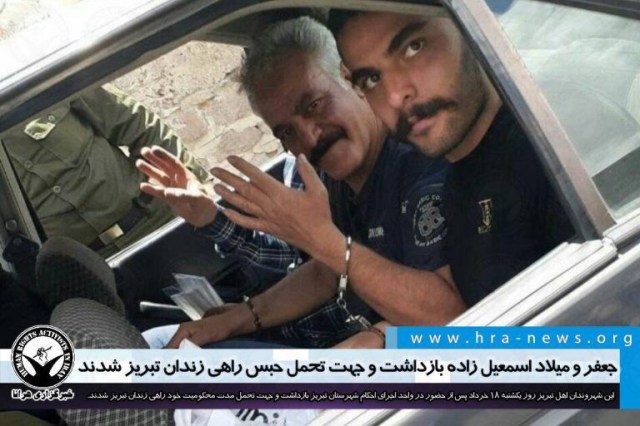جعفر اسمعیل زاده بیشک و فرزندش میلاد اسمعیل زاده بیشک شهروندان اهل تبریز امروز یکشنبه ۱۸ خردادماه پس از حضور در واحد اجرای احکام شهرستان تبریز بازداشت و جهت تحمل مدت محکومیت خود راهی زندان تبریز شدند. این شهروندان پیشتر توسط دادگاه انقلاب تبریز هر کدام به شش ماه حبس تعزیری محکوم شدند.