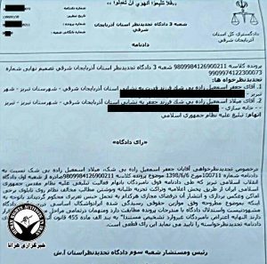 این حکم توسط شعبه ۳ دادگاه تجدیدنظر استان آذربایجان شرقی عینا تایید و به آنان ابلاغ شد.