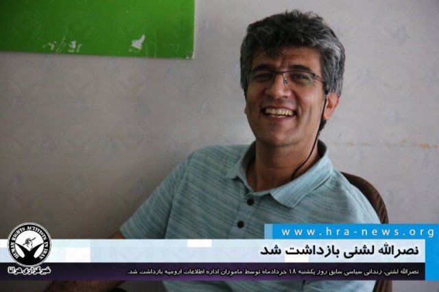 ارگان خبری مجموعه فعالان حقوق بشر در ایران، روز یکشنبه ۱۸ خردادماه ۱۳۹۹، نصرالله لشنی، زندانی سیاسی که در مرخصی به سر می برد توسط ماموران اداره اطلاعات ارومیه بازداشت شد.