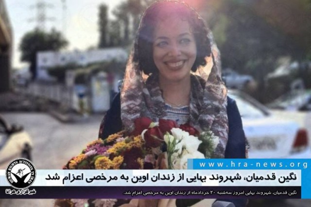 ارگان خبری مجموعه فعالان حقوق بشر در ایران، امروز سهشنبه ۲۰ خردادماه ۱۳۹۹، نگین قدمیان، شهروند بهایی از زندان اوین به مرخصی ۱۱ روزه اعزام شد.