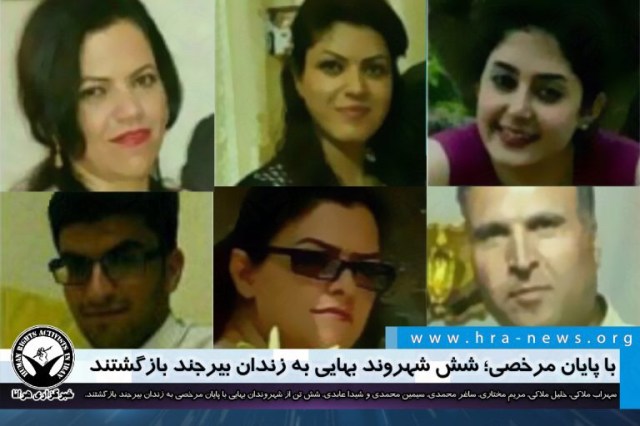 ارگان خبری مجموعه فعالان حقوق بشر در ایران، سهراب ملاکی، خلیل ملاکی، مریم مختاری، ساغر محمدی، سیمین محمدی و شیدا عابدی شش تن از شهروندان بهایی طی روزهای گذشته با پایان مرخصی به زندان بیرجند بازگشتند.