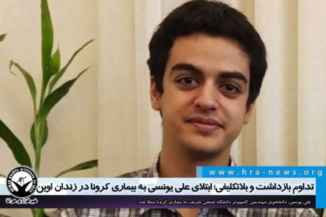 ارگان خبری مجموعه فعالان حقوق بشر در ایران، روز چهارشنبه ۲۱ خردادماه ۱۳۹۹، علی یونسی، دانشجوی مهندسی کامپیوتر دانشگاه صنعتی شریف طی یک تماس تلفنی با خانواده خود از ابتلا به بیماری کرونا و همچنین انتقال به سلول های چندنفره بازداشتگاه وزارت اطلاعات موسوم به بند ۲۰۹ زندان اوین خبر داده است.
