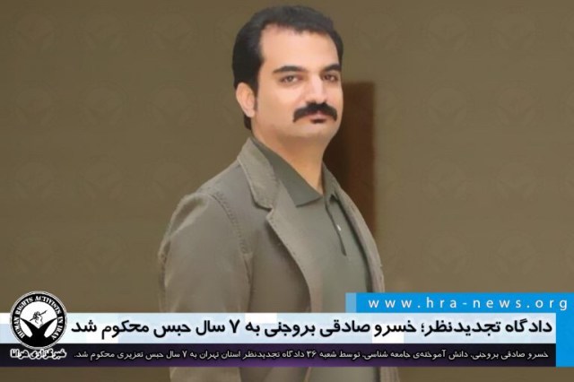 ارگان خبری مجموعه فعالان حقوق بشر در ایران، خسرو صادقی بروجنی، دانش آموختهی جامعه شناسی، توسط دادگاه تجدیدنظر استان تهران به ۷ سال حبس تعزیری محکوم شد.