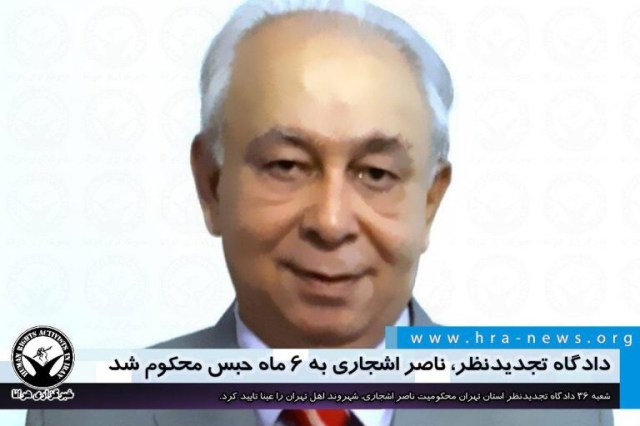 ارگان خبری مجموعه فعالان حقوق بشر در ایران، شعبه ۳۶ دادگاه تجدیدنظر استان تهران محکومیت ناصر اشجاری، شهروند اهل تهران را عینا تایید کرد.