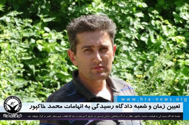 ارگان خبری مجموعه فعالان حقوق بشر در ایران، محمد خاکپور، فعال ترک (آذربایجانی) ساکن اردبیل با دریافت ابلاغیه ای به دادگاه انقلاب شهرستان کلیبر فراخوانده شد.