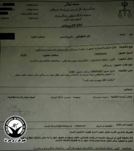 براساس این ابلاغیه که به آقای خاکپور ابلاغ شده است، وی باید در تاریخ ۲ تیرماه ۹۹ در دادگاه انقلاب شهرستان کلیبر حاضر شود، اتهامات مطروحه علیه وی “تبلیغ علیه نظام” عنوان شده است.