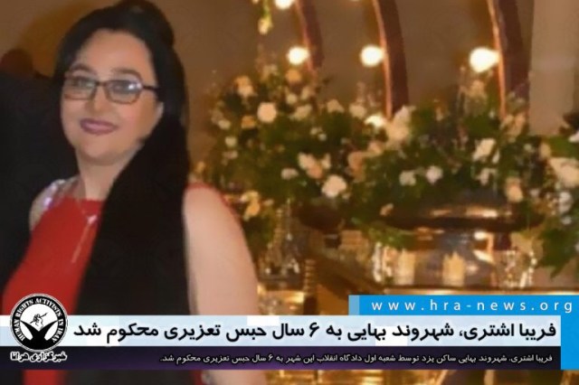 ارگان خبری مجموعه فعالان حقوق بشر در ایران، فریبا اشتری، شهروند بهایی ساکن یزد توسط دادگاه انقلاب این شهر به ۶ سال حبس تعزیری محکوم شد.