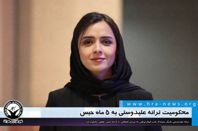 ارگان خبری مجموعه فعالان حقوق بشر در ایران، ترانه علیدوستی بازیگر سینما طی حکمی به ۵ ماه حبس محکوم شد.