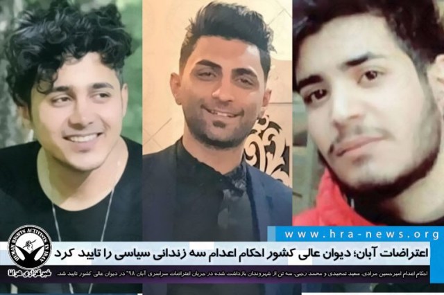احکام اعدام امیرحسین مرادی، سعید تمجیدی و محمد رجبی، سه تن از شهروندان بازداشت شده در جریان اعتراضات سراسری ۹۸ موسوم به “اعتراضات آبان” در دیوان عالی کشور تایید شد. این افراد پیشتر توسط دادگاه انقلاب تهران به حبس، شلاق و اعدام محکوم شده بودند.