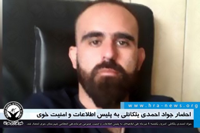 ارگان خبری مجموعه فعالان حقوق بشر در ایران،امروز یکشنبه ۸ تیرماه ۱۳۹۹ جواد احمدی یئکانلی فعال ترک (آذربایجانی) ساکن خوی، به پلیس اطلاعات و امنیت عمومی فرماندهی انتظامی این شهرستان احضار شد.