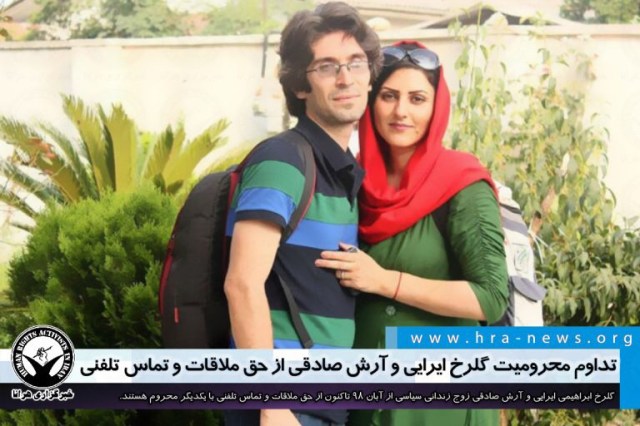 ارگان خبری مجموعه فعالان حقوق بشر در ایران، گلرخ ابراهیمی ایرایی، زندانی سیاسی در زندان قرچک ورامین و آرش صادقی فعال مدنی محبوس در زندان رجایی شهر کرج از زمان بازداشت خانم ایرایی از حق ملاقات و تماس تلفنی با یکدیگر محروم هستند.