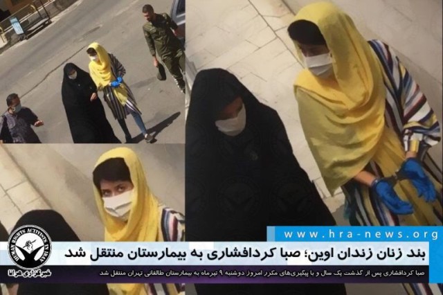 ارگان خبری مجموعه فعالان حقوق بشر در ایران،امروز دوشنبه ۹ تیرماه ۱۳۹۹، صبا کردافشاری، فعال مدنی محبوس در بند زنان اوین، به بیمارستان طالقانی تهران منتقل شد.