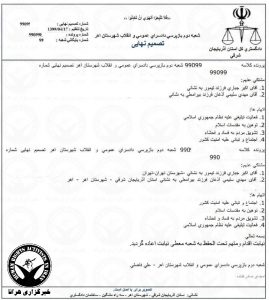 اتهامات مطروحه علیه آقای سلیمی نیز “اجتماع و تبانی علیه امنیت کشور، توهین به مقدسات اسلام، تشویق مردم به فساد و فحشا و فعالیت تبلیغی علیه نظام جمهوری اسلامی” عنوان شده است.