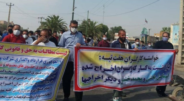 به نقل سندیکای کارگران نیشکر هفت تپه، امروز شنبه ۲۱ تیر ۱۳۹۹، کارگران نیشکر هفت تپه در بیست و هفتمین روز از اعتصابشان با راهپیمایی در سطح شهر شوش و تجمع در مقابل ساختمان فرمانداری و اداره کار این شهر خواستار رسیدگی به مطالباتشان شدند.