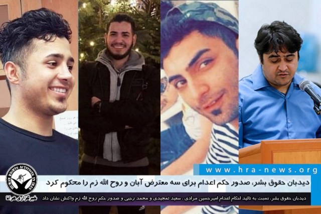 سازمان دیدبان حقوق بشر روز جمعه، ۲۰ تیرماه ۹۹، با انتشار بیانیه ای نسبت به صدور و تائید حکم اعدام سه تن از معترضات اعتراضات آبان و همچنین صدور حکم اعدام برای روح الله زم، فعال سیاسی واکنش نشان داد.