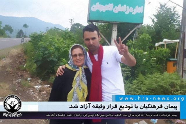 ارگان خبری مجموعه فعالان حقوق بشر در ایران، امروز سهشنبه ۲۴ تیرماه ۱۳۹۹، پیمان فرهنگیان، شاعر و فعال کارگری ساکن بندر کیاشهر با تودیع قرار وثیقه ۴۰۰ میلیون تومانی از زندان لاهیجان آزاد شد.