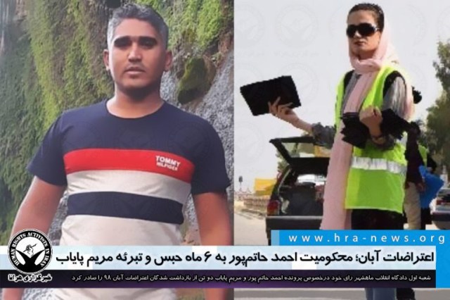 احمد حاتم پور، شهروند اهل بهبهان و یکی از بازداشت شدگان اعتراضات آبان ۹۸ توسط شعبه اول دادگاه انقلاب ماهشهر به شش ماه حبس تعزیری محکوم شد. آقای حاتم پور همچنین از بابت مجازات تکمیلی به مدت ۲ سال از عضویت در احزاب، گروهها و دستهجات سیاسی منع شد. در متن دادنامه صادره “خواندن سرود یار دبستانی من، سر دادن شعار نه غزه، نه لبنان، جانم فدای ایران و شهید نامیدن جانباختگان اعتراضات سراسری آبان ۹۸” به عنوان مصادیق اتهام عنوان شده است. مریم پایاب، فعال مدنی اهل بهبهان و دیگر متهم این پرونده نیز از اتهامات مطروحه تبرئه شد. وی پیشتر در جریان اعتراضات آبان در اثر شلیک گلوله به ناحیه کمر در بهبهان زخمی شده بود.