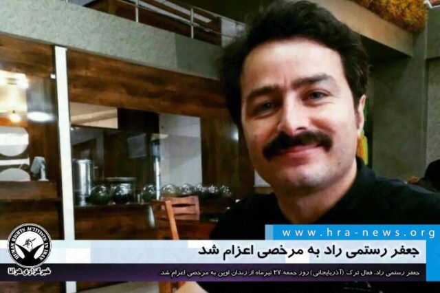 ارگان خبری مجموعه فعالان حقوق بشر در ایران، روز جمعه ۲۷ تیرماه ۱۳۹۹، جعفر رستمی راد، فعال ترک (آذربایجانی) از زندان اوین به مرخصی اعزام شد.