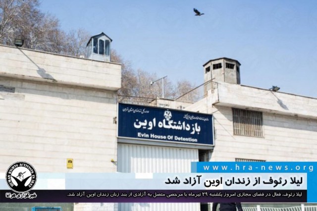 ارگان خبری مجموعه فعالان حقوق بشر در ایران، امروز یکشنبه ۲۹ تیرماه ۱۳۹۹، لیلا رئوف، فعال در فضای مجازی از بند زنان زندان اوین آزاد شد.