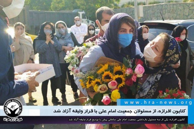 ارگان خبری مجموعه فعالان حقوق بشر در ایران، امروز سه شنبه ۳۱ تیرماه ۱۳۹۹، کتایون افرازه، از مسئولان جمعیت امام علی پس از یک ماه بازداشت، با تودیع قرار وثیقه، به صورت موقت و تا پایان مراحل دادرسی آزاد شد.