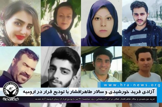 ارگان خبری مجموعه فعالان حقوق بشر در ایران، روز سهشنبه ۳۱ تیر ۱۳۹۹، فرید خورشیدی و سالار طاهرافشار، فعالان ترک (آذربایجانی) با تودیع قرار از زندان ارومیه آزاد شدند.
