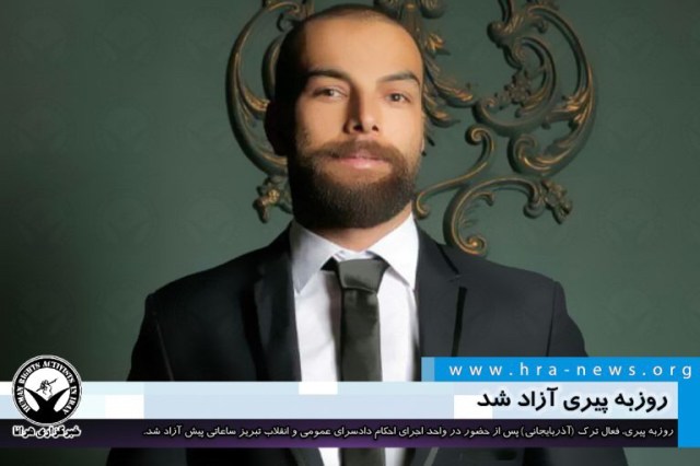 ارگان خبری مجموعه فعالان حقوق بشر در ایران، ساعت ۱۴ و ۳۰ دقیقه امروز چهارشنبه ۱ مرداد ۱۳۹۹، روزبه پیری، فعال ترک (آذربایجانی) آزاد شد.
