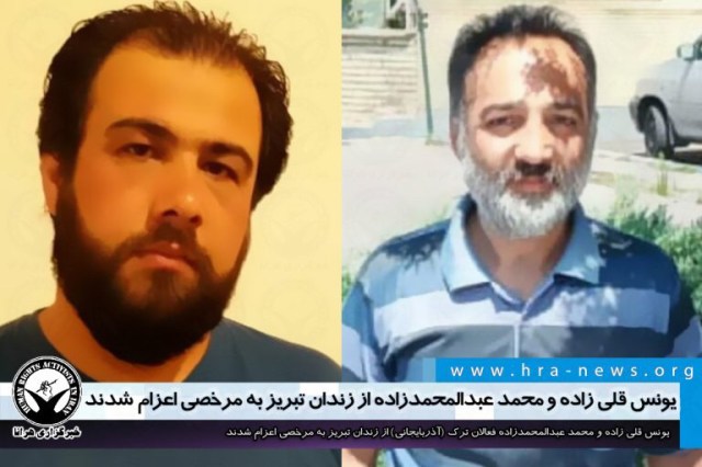 یونس قلی زاده فعالان ترک (آذربایجانی) که دوره محکومیت سه ماهه خود را در زندان تبریز سپری میکند،امروز پنجشنبه ۲ مرداد به مرخصی اعزام شد. همچنین محمد عبدالمحمدزاده فعال ترک (آذربایجانی) که دوره محکومیت ۱۵ ماهه خود را در زندان تبریز سپری میکند روز چهارشنبه ۱ مرداد به مرخصی اعزام شد.