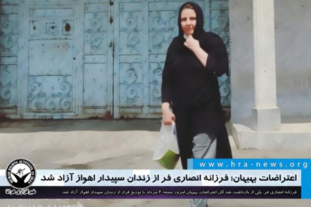 ارگان خبری مجموعه فعالان حقوق بشر در ایران، امروز جمعه ۳ مرداد ۱۳۹۹ فرزانه انصاری فر، یکی از بازداشت شدگان اعتراضات بهبهان و خواهر فرزاد انصاری فر، یکی از جانباختگان اعتراضات آبان ۹۸ با تودیع قرار کفالت از زندان سپیدار اهواز آزاد شد.