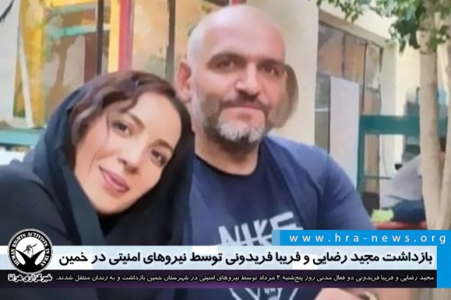 فریبا فریدونی و مجید رضایی دو فعال مدنی دیروز پنجشنبه ۲ مرداد توسط ماموران اطلاعات سپاه در شهرستان خمین بازداشت شدند. مجید رضایی پس از بازداشت به زندان خمین و فریبا فریدونی به زندان اراک منتقل شده است. گفته میشود این شهروندان فردا شنبه به زندان اوین منتقل خواهند شد.