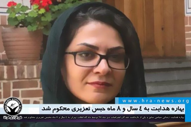 ارگان خبری مجموعه فعالان حقوق بشر در ایران، بهاره هدایت، زندانی سیاسی سابق و یکی از بازداشت شدگان اعتراضات دی ماه ۹۸ توسط دادگاه انقلاب تهران به ۴ سال و ۸ ماه محبس تعزیری محکوم شد.