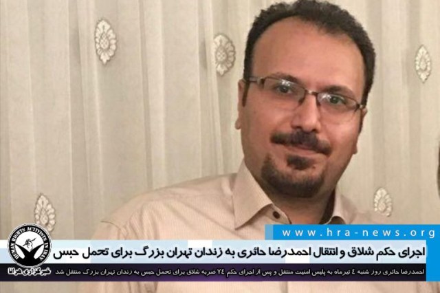 احمدرضا حائری از متهمین پرونده موسوم به “پنجشنبه سیاه اوین” روز شنبه ۴ تیرماه جهت اجرای حکم خود را به دادسرای اوین معرفی کرد. آقای حائری پس از حضور در دادسرای اوین به پلیس امنیت منتقل و در آنجا حکم ۷۴ ضربه شلاق وی اجرا شد. وی پس از اجرای حکم شلاق نهایتا شب گذشته جهت تحمل دوران محکومیت خود به زندان تهران بزرگ منتقل شد. آقای حائری اسفندماه ۹۸ توسط دادگاه تجدیدنظر استان تهران به اتهام تبلیغ علیه نظام و اخلال در نظم عمومی به ۶ ماه حبس تعزیری و ۷۴ ضربه شلاق محکوم شده بود.